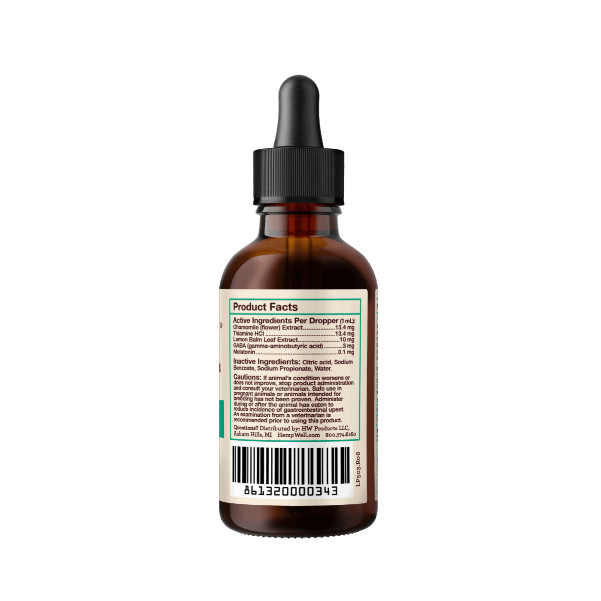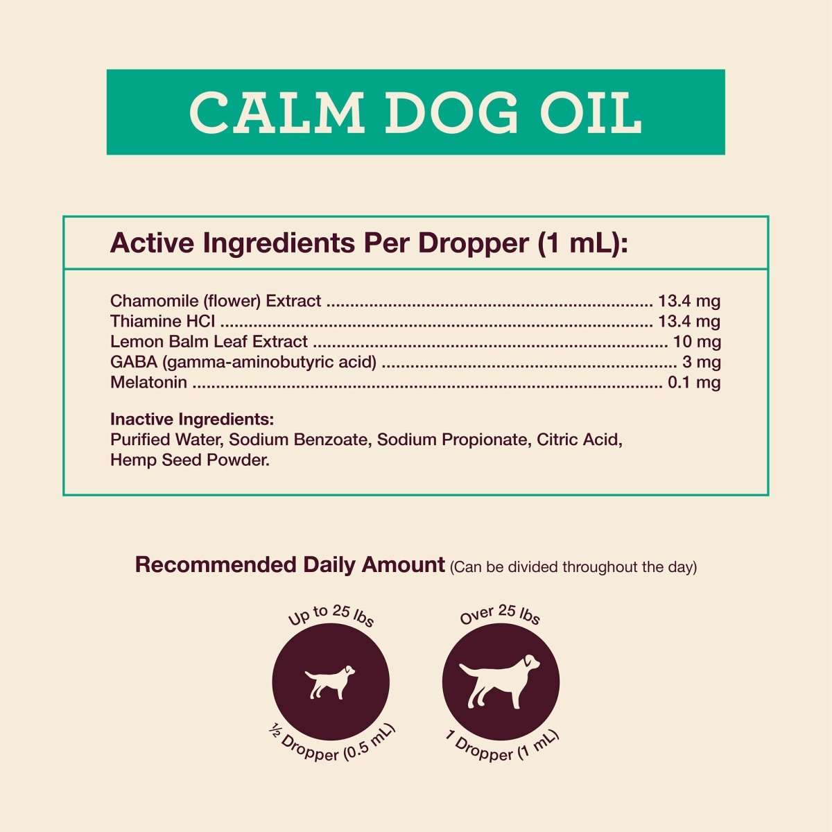 Hemp contains cannabinoids that interact with the endocannabinoid system in your dog’s body, regulating stress, mood, and anxiety. Supporting this system promotes calm and balance. Calm dog also includes organic ingredients like chamomile, melatonin, and lemon balm