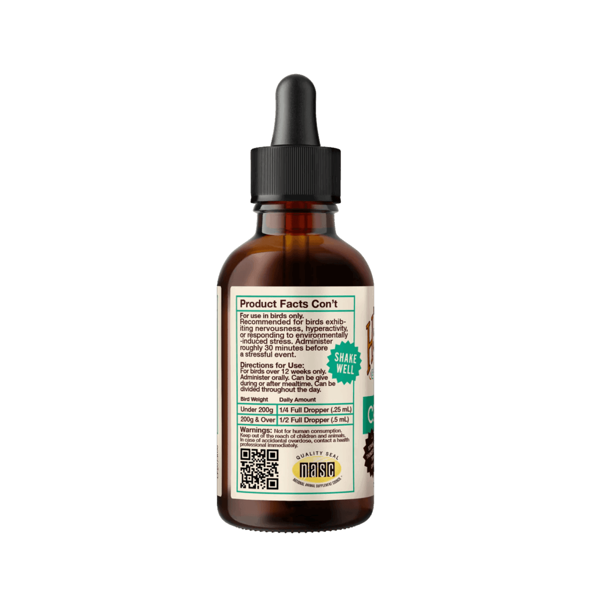 Calm Bird Oil supports a tranquil environment for your feathered companion by easing stress and calming nervous behaviors. Designed specifically for sensitive and hormonal birds, this 2-ounce blend combines organic chamomile, melatonin, and lemon balm without any fillers. It promotes emotional balance and a peaceful mood, helping your bird feel secure and serene in its home.