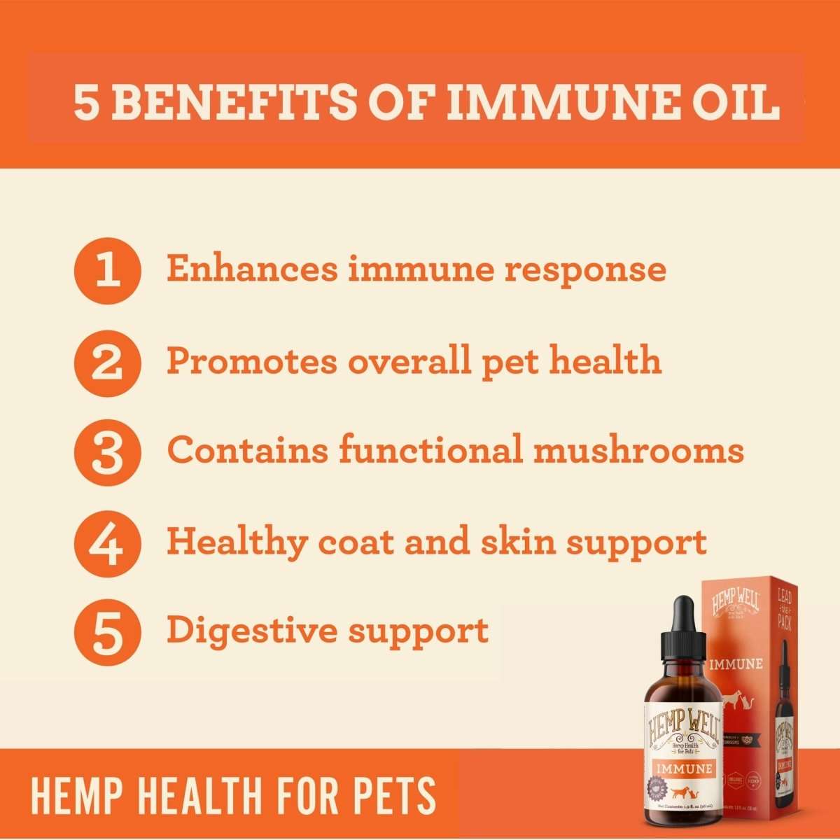 Hemp Well Immune liquid tincture combines the power of organic hemp with functional mushrooms—Lion’s Mane, Reishi, and Turkey Tail—to promote your pet’s immune and digestive health. This 2-ounce formula supports gut wellness and fortifies the immune system, helping your dog or cat maintain vitality and readiness for daily activities. Free from artificial additives, it’s a natural way to enhance long-term wellness for pets of all breeds and sizes.
