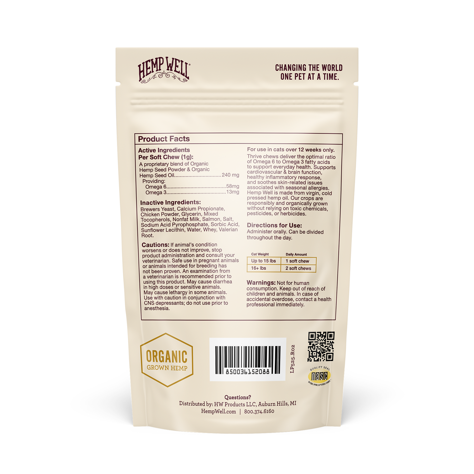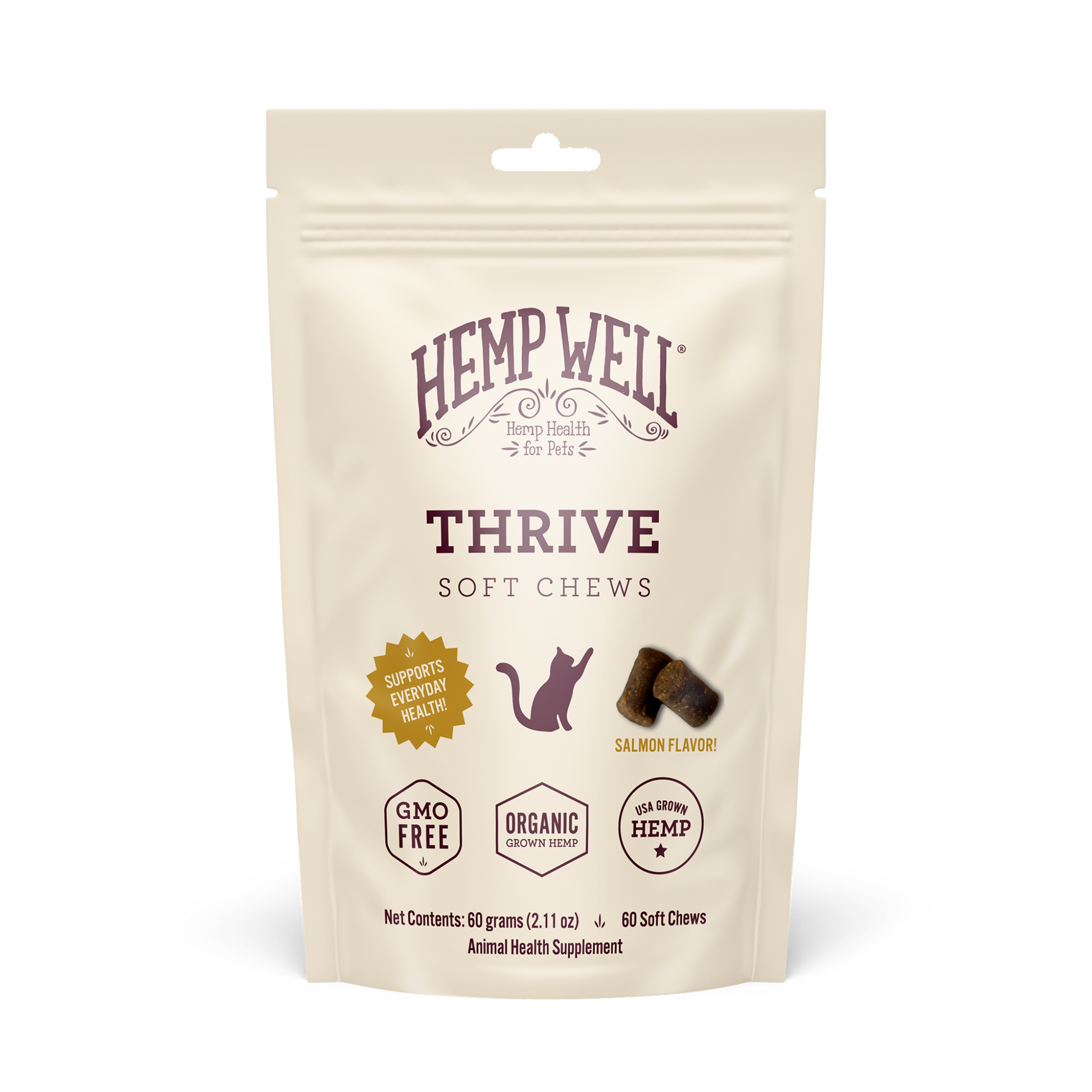 Thrive Cat Soft Chews - Organic, USA Grown - Hemp Well® tag4 organic over 1,000,000 pets love Hemp Well